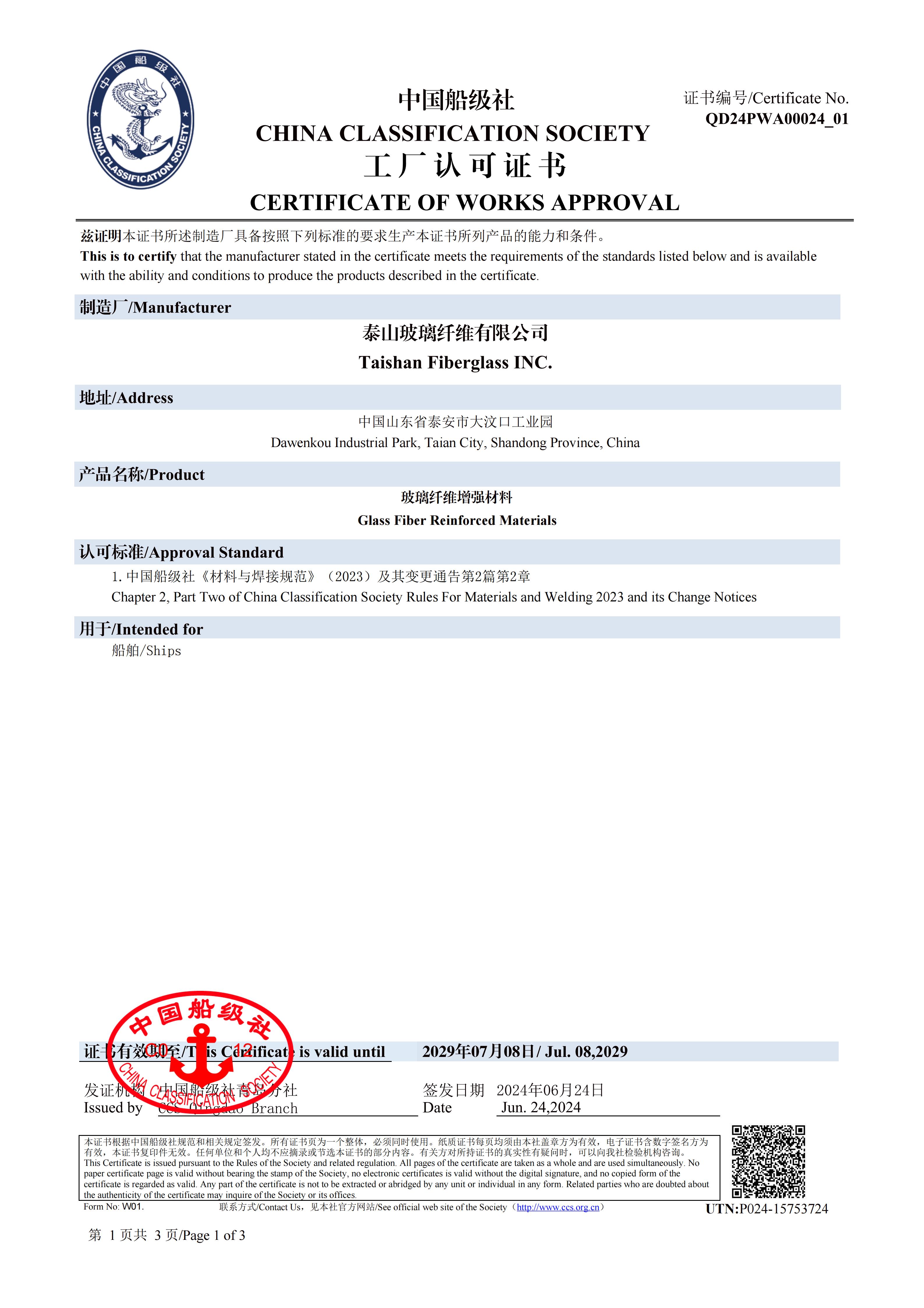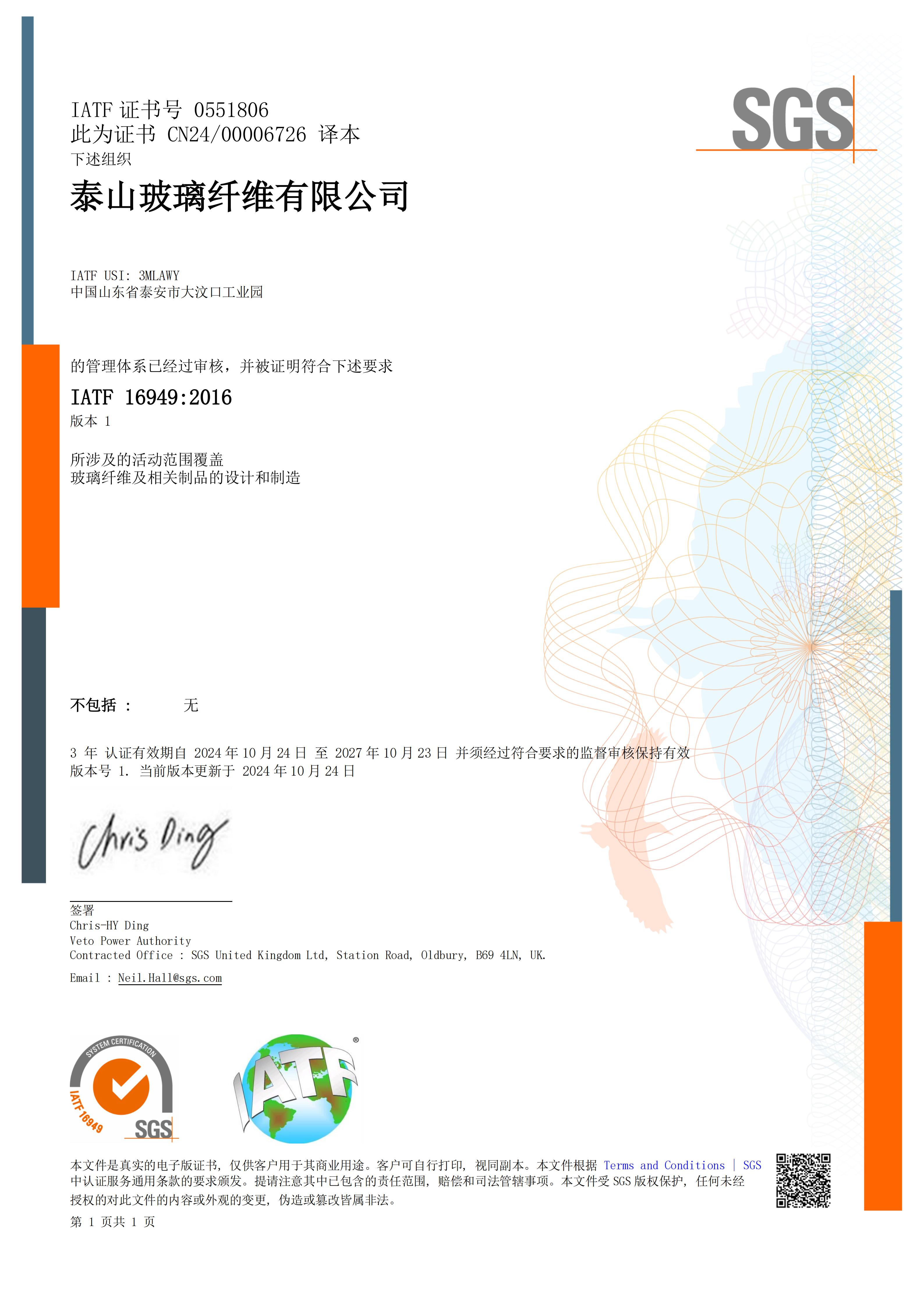 為推動我國建材工業(yè)產品質量進步,弘揚“中國制造”的信譽形象,贏得全球消費者的滿意和信賴,泰山玻璃纖維有限公司鄭重承諾:
